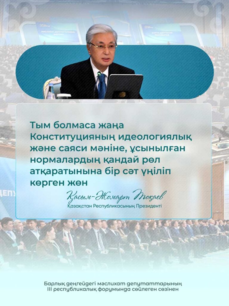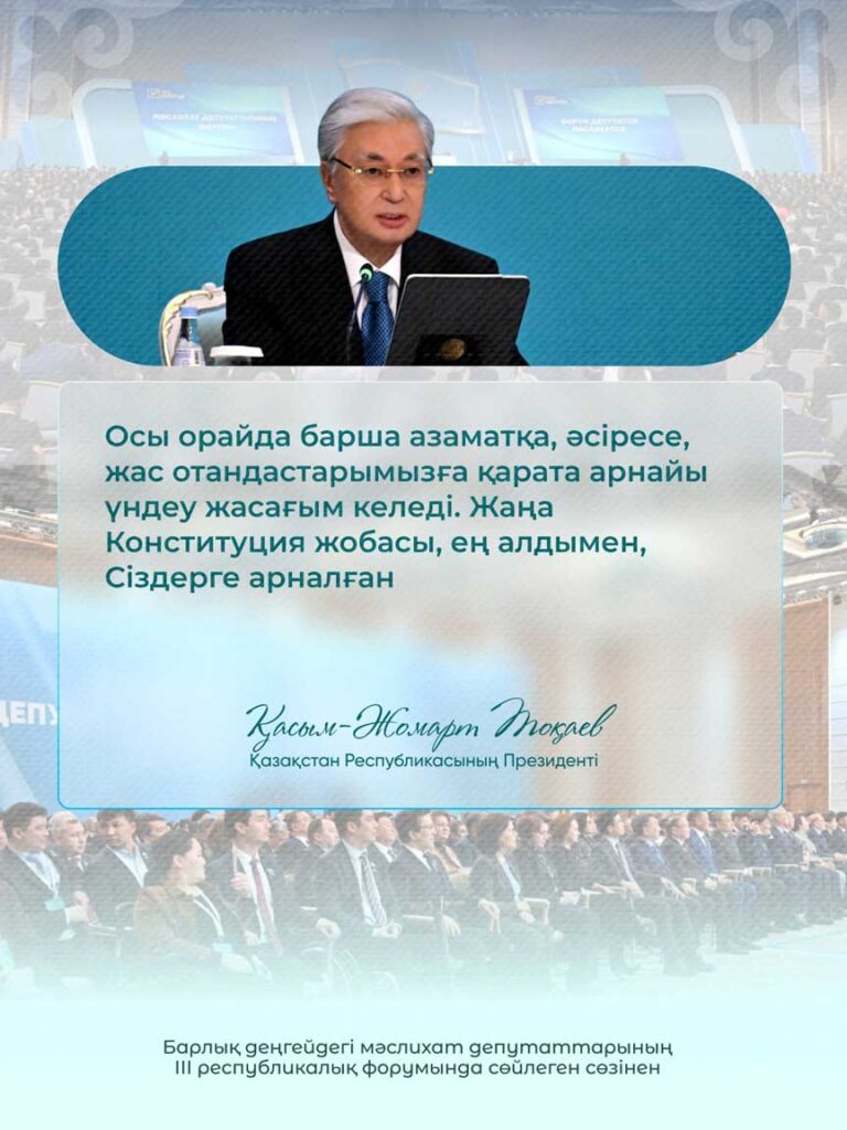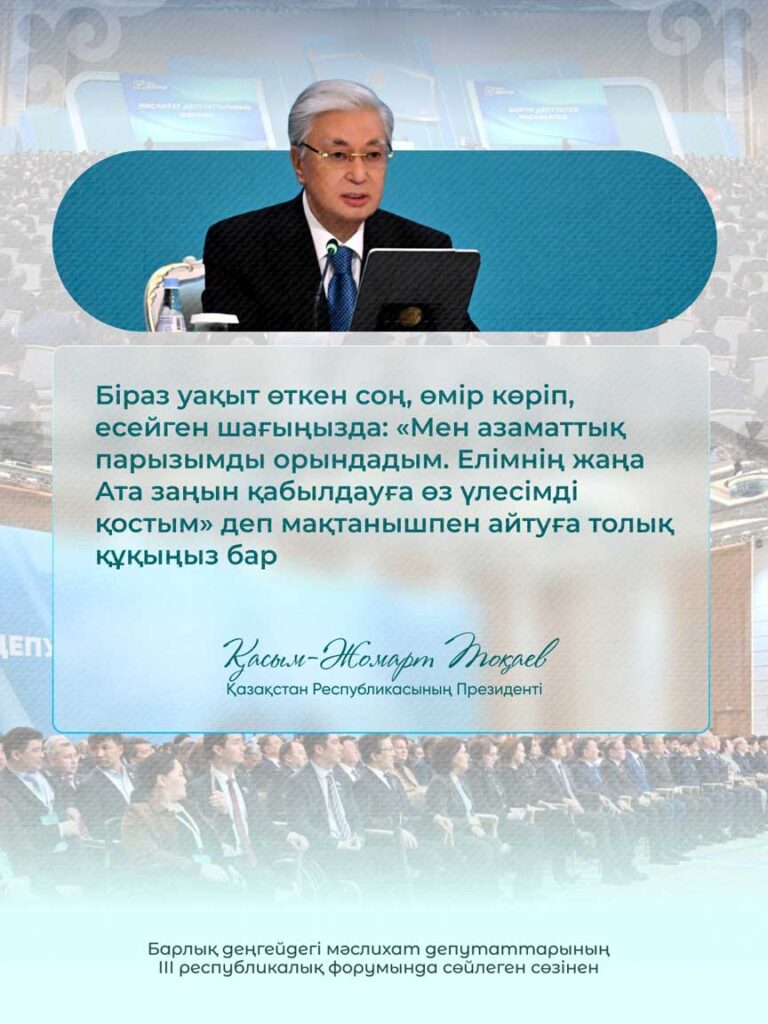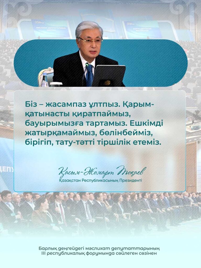 Барлық деңгейдегі мәслихат депутаттарының ІІІ республикалық форумында сөйлеген сөзінен