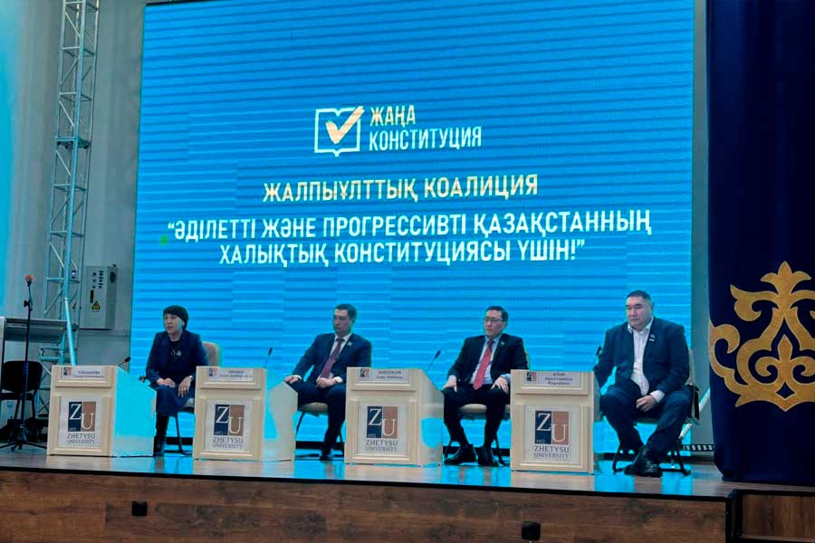 Бүгін Талдықорған қаласындағы Ілияс Жансүгіров атындағы университетінде Жаңа Конституция жобасының мазмұнын түсіндіру, ондағы өзгерістердің ел болашағына әсерін қоғамның белсенді бөлігі болып саналатын жастарға жан-жақты жеткізу мақсатында студенттер және мұғалімдермен кездесуі өтті.